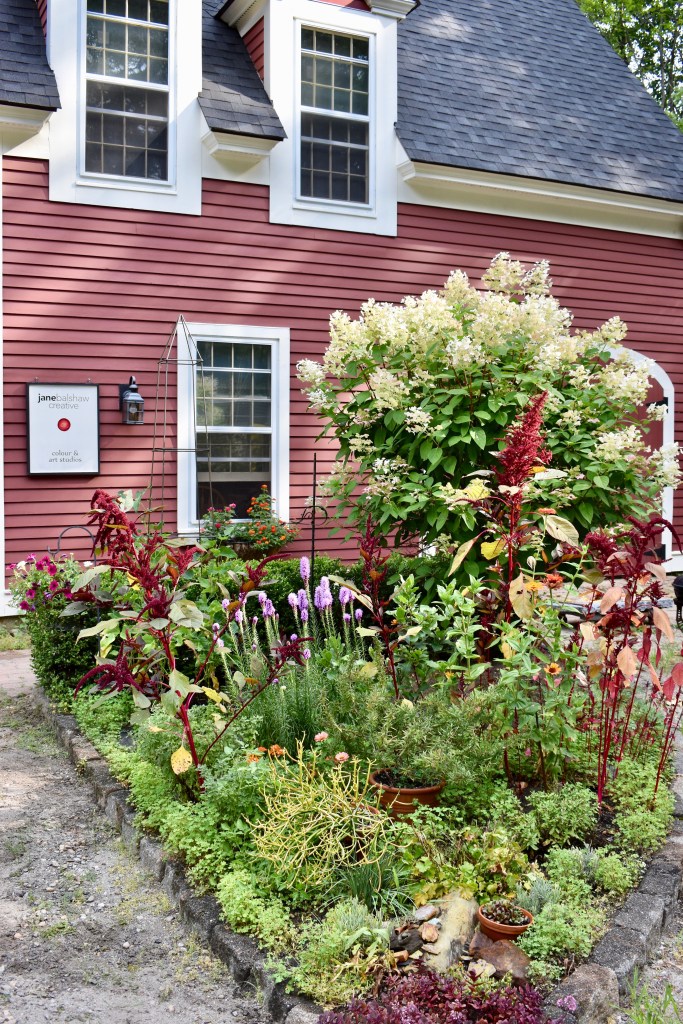If you know my artwork you will know that I do love the color red with its long wave-length excitement. The color was a natural choice to paint our studio workshop-barn and as a result, the gardens in front of it have mirrored its tone. I love how the garden has developed into its redness. Humph proper gardener.