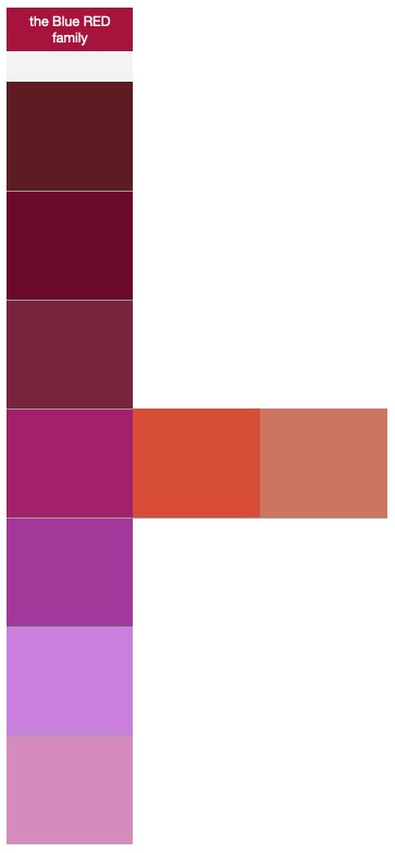 We tend to think of Red as a color all its own but from a painters point of view, it is a singular hue that many other colors can be born from making a family of related “reds”; think papa reds, mama reds and baby reds. Below are some color gradation charts showing how I used the varying shades from a family reds for my garden. Perhaps you can use the charts too for your next project; a garden, a room, a quilt or use them to perhaps just help yourself observe the world around you with new eyes.