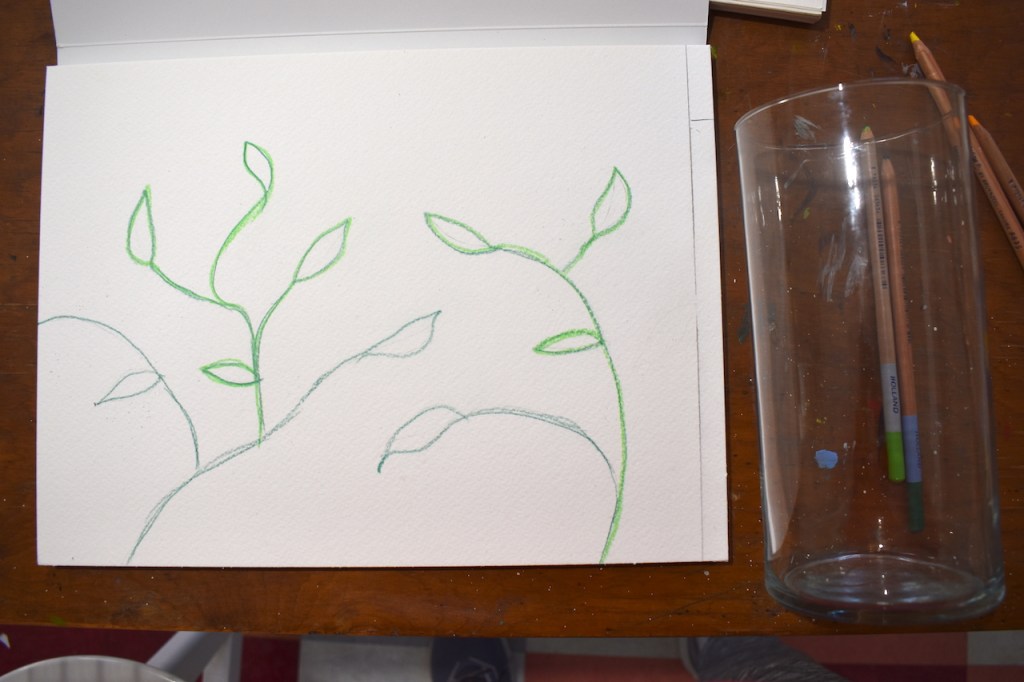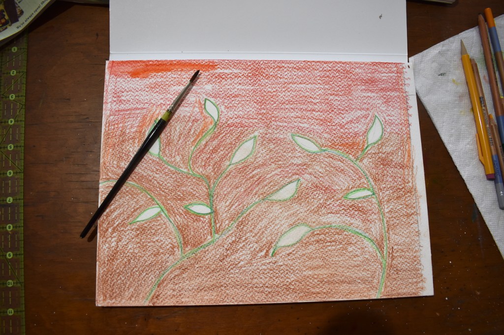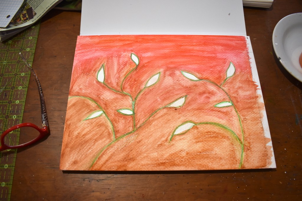 I tested a mix of water-color pencils to get that shade of Lava Falls.