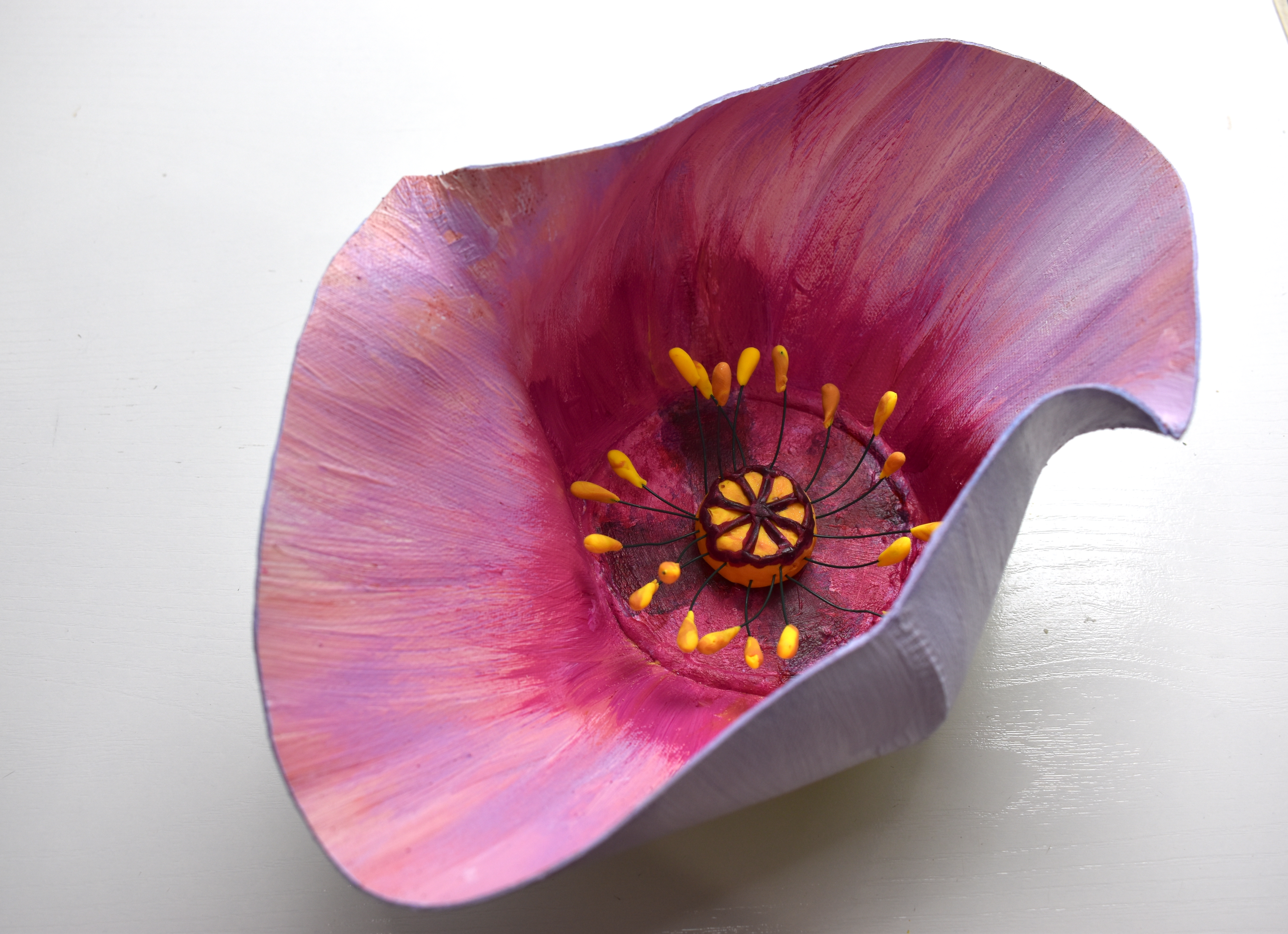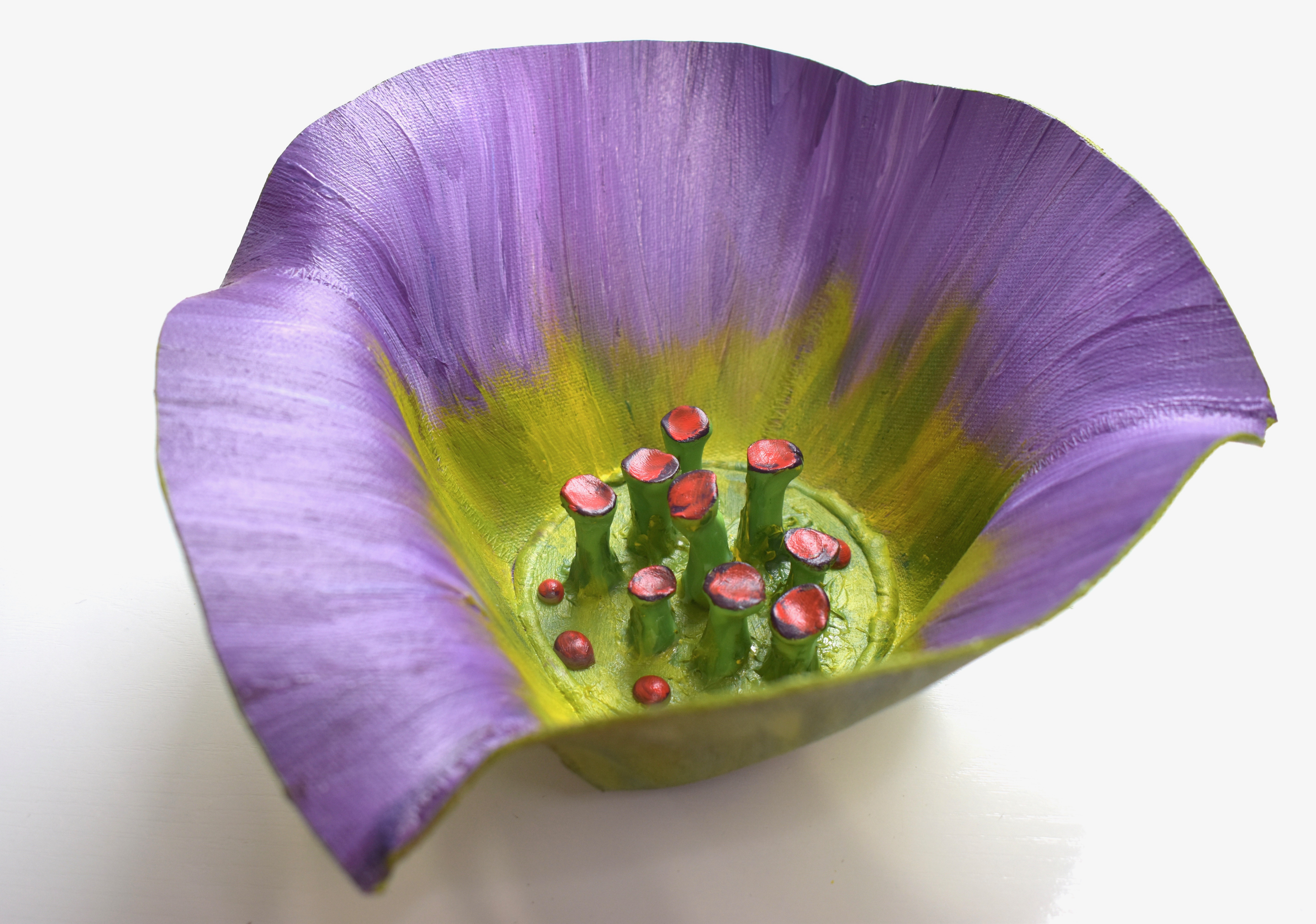 These vessels I created by stiffening and sewing canvas. Because I want them to stay stiff I use the thickest type of acrylic paint which is artist’s heavy body acrylic. My go-to is Golden brand. I have also used this paint to refurbish canvas sneakers with colorful, shout-out designs, thinned to paint upholstery and also to re-color leather shoes.