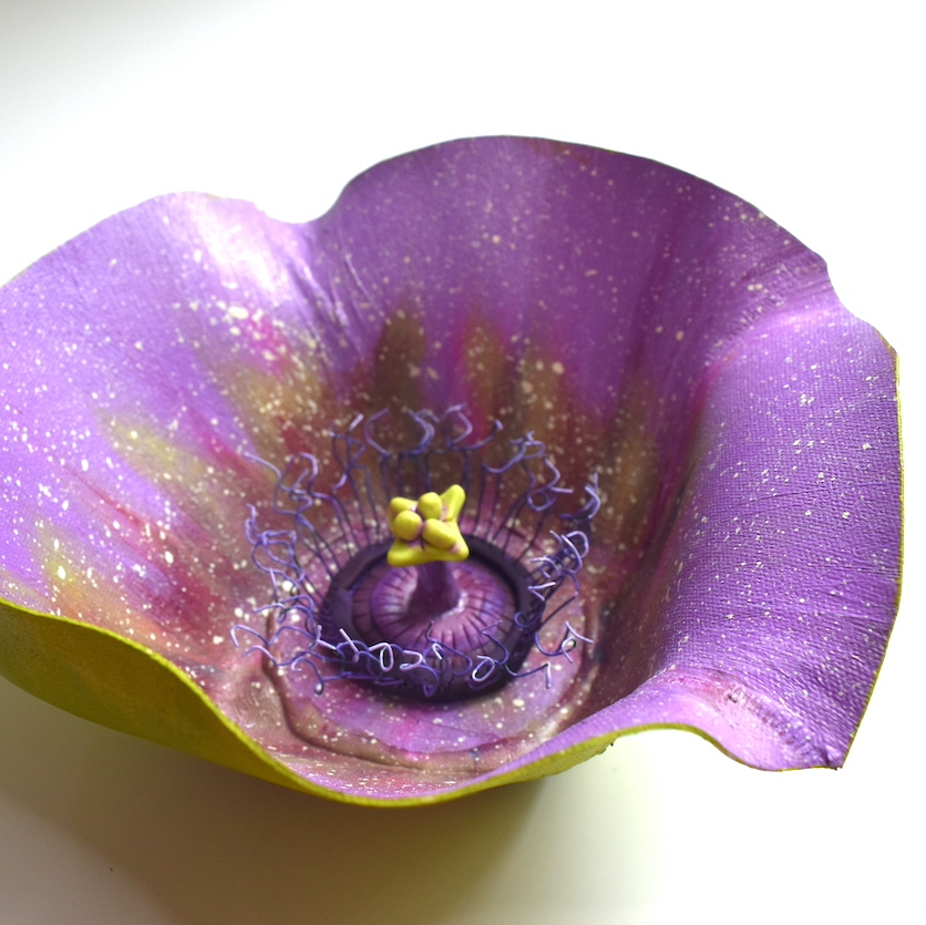 And even though these vessels that I sculpted of canvas resemble a blossom, they really are not at all. But the colors and the shapes of the interiors were inspired by some of the tiny details that flowers showcase.