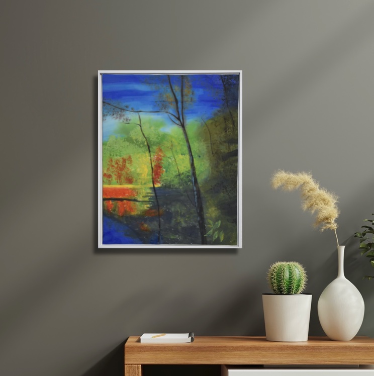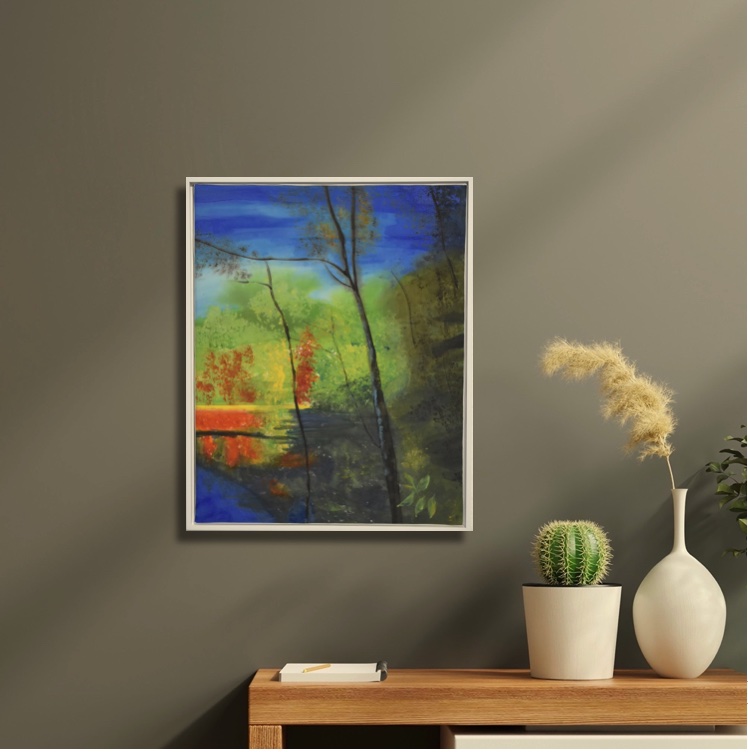 #1 Art should hang at the natural eye level. However, this varies from place to place. In a hallway where one is standing/walking it should be higher than in a living room where one is sitting or a bedroom where one is lying down. General rule of thumb is that the center of your art should hang around 5’ in a ‘standing space’ and in a ‘sitting space’ it is determined by the height of the chairs/sofa bed, at where the eye rests when seated. A bedroom may be even lower still just at the bedside.