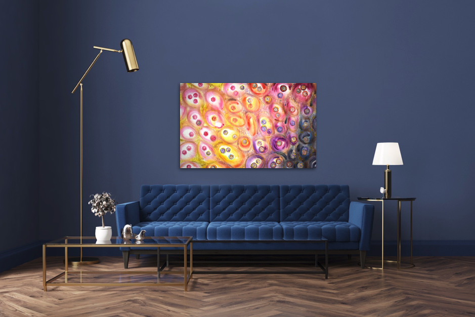 #4 Art should be lit to flatter its colors and shapes. Gallery lighting is usually neutral (half way between Day Light and Warm Light temperatures) or Daylight calibrated bulbs. So to keep your art looking the same as you saw it, you should consider changing out your light bulbs to the same temperature reading.