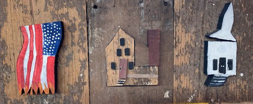 My husband Dave will be showing his artwork too. We have a wall of his carved wood folk art and his canvases are scattered through out.