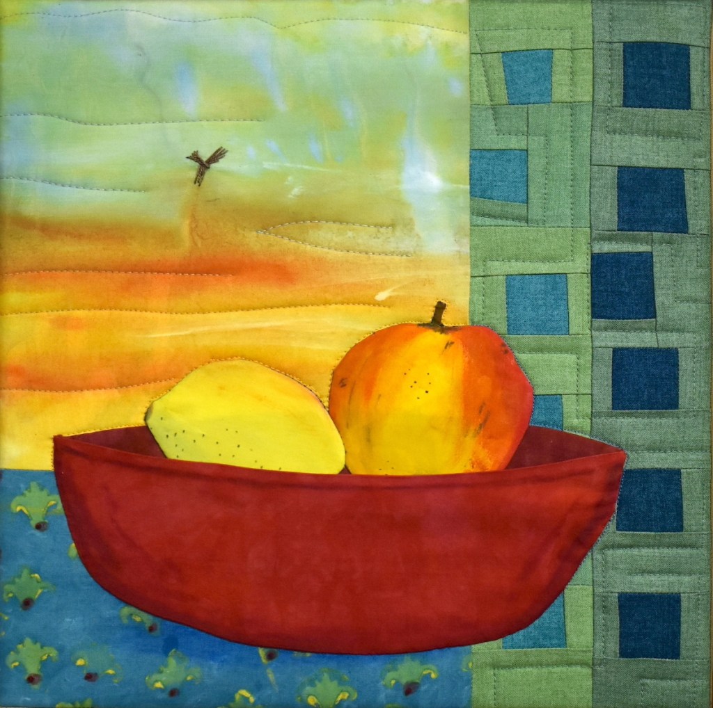 Jane’s painted & pieced art quilts, textile sculpture & wearable art. Dave’s paintings on canvas and cutting boards from rare hardwoods.