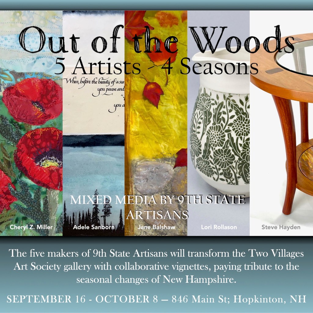9th State Artisans is a group of 5 makers from New Hampshire. We met at the beginning of 2020 and have met each month since then challenging and supporting one another. Eventually we named ourselves. This is our first joint show.