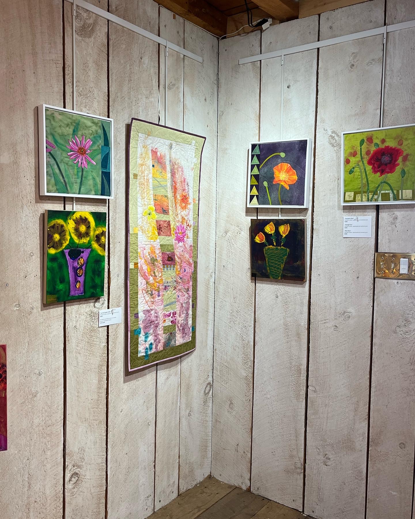 Our gardens have themes and feature objets d’art with color stories for each area. My husband’s and my paintings, 3-D sculpture and quilts will be placed in vignettes throughout the gardens and a studio show will be in progress.