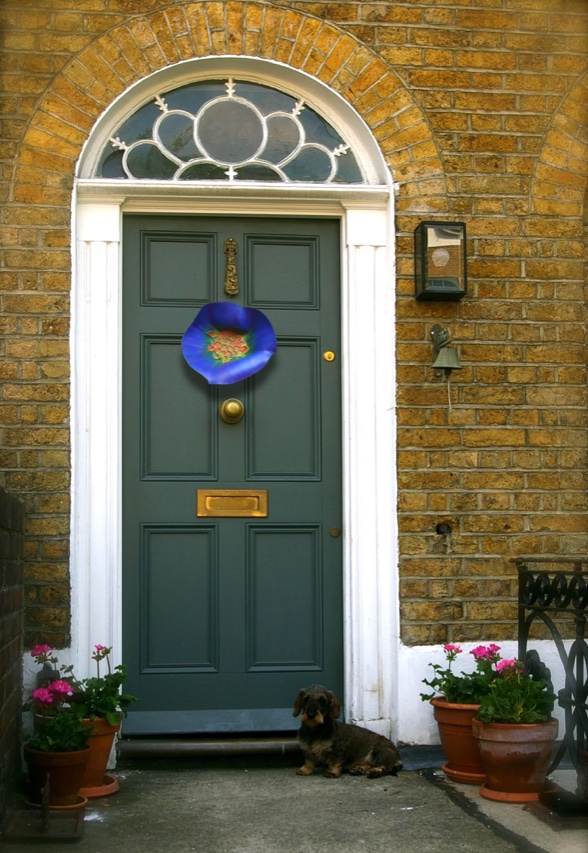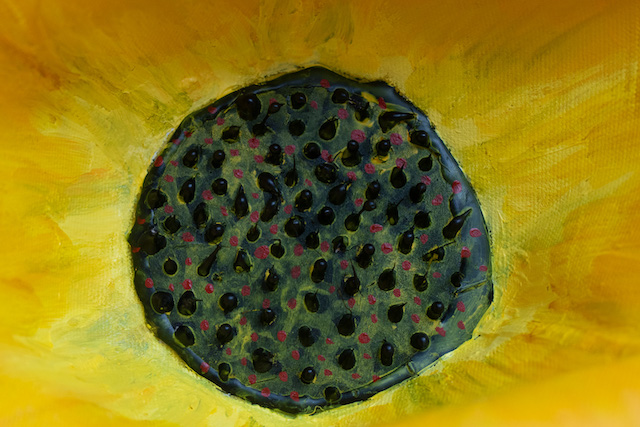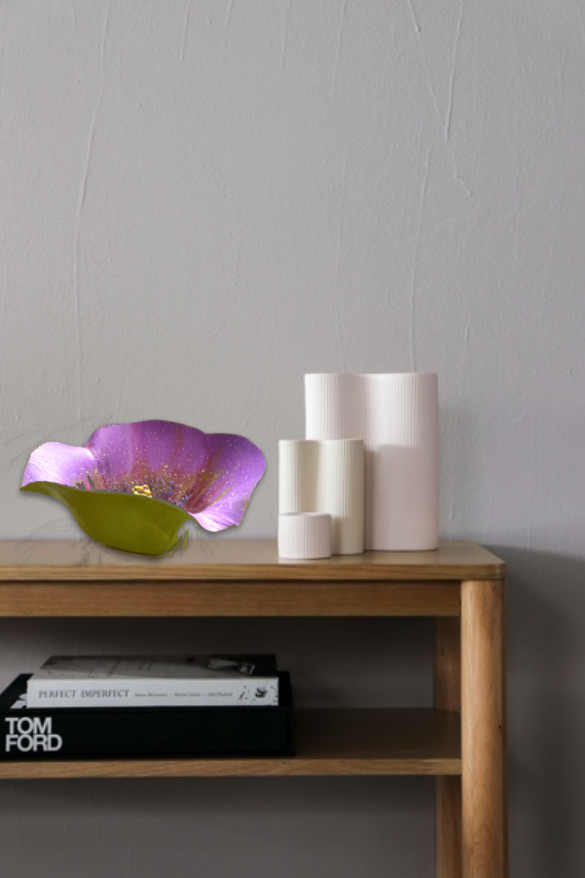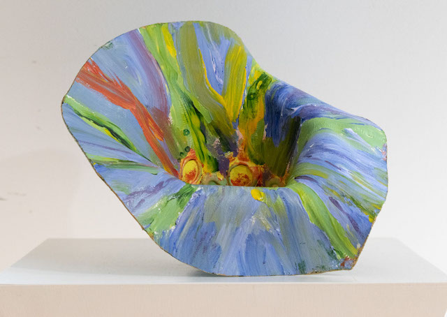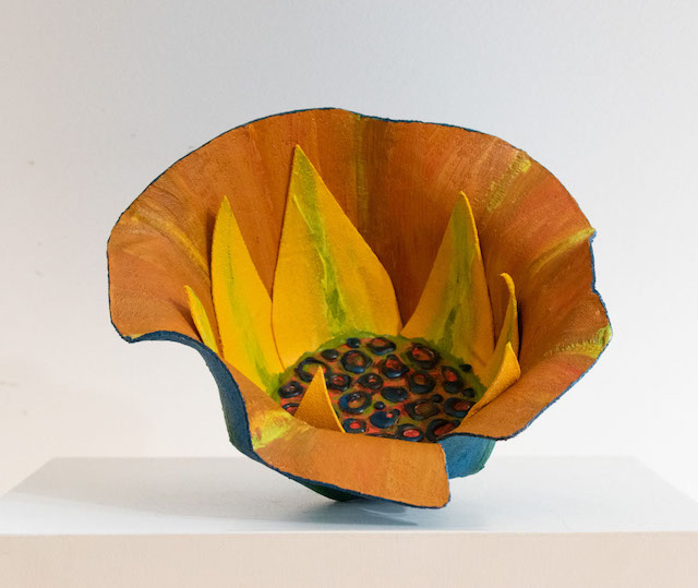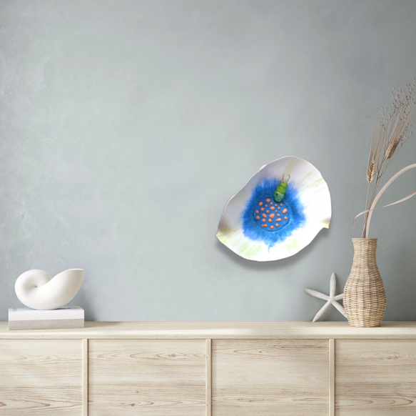 Sculpted canvas, thread, paint and polymer. Inspired by nature, these Botanica Vessels are created by fusing & stitching canvas then painting with acrylic. They are embellished with hand sculpted polymer. For the wall, covered porch, front door or table.