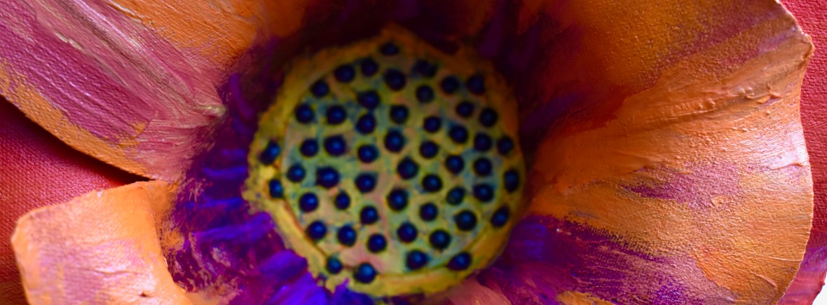 Sculpted canvas, thread, paint and polymer. Inspired by nature, these Botanica Vessels are created by fusing & stitching canvas then painting with acrylic. They are embellished with hand sculpted polymer. For the wall, covered porch, front door or table.