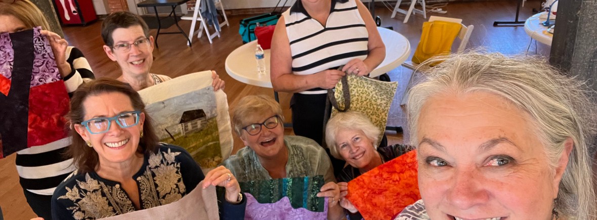 For 2023 I have revamped that way I teach fabric art. Rather than simply showing you how to paint on little bits of fabric [that you then have to figure out how to use or store indefinitely!], I will teach with a project that incorporates various techniques and art principles that become the core lessons in the class. You will end up with a finished project but will also learn things to use on other projects.